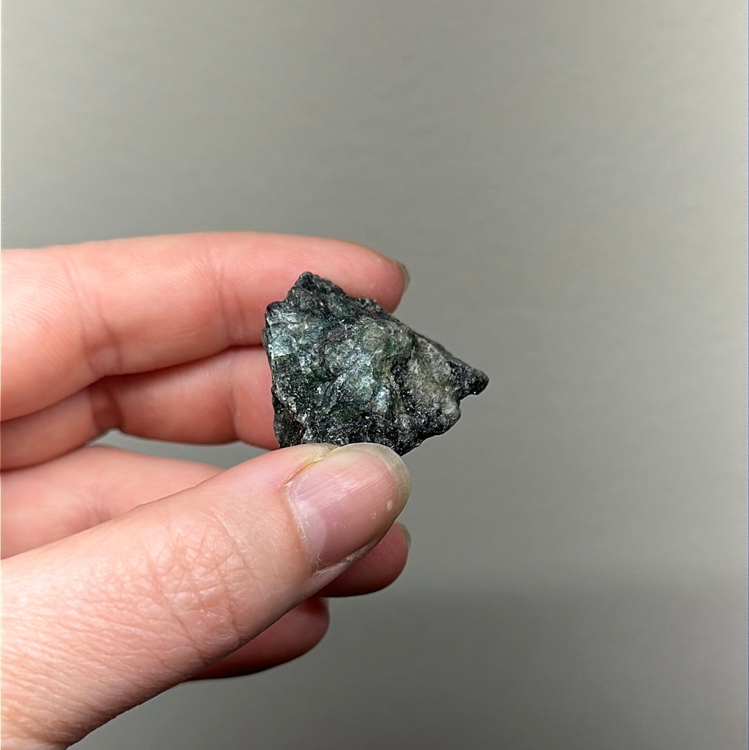 Raw Emerald. Used for love, wisdom, and harmony. Activates Heart Chakra.